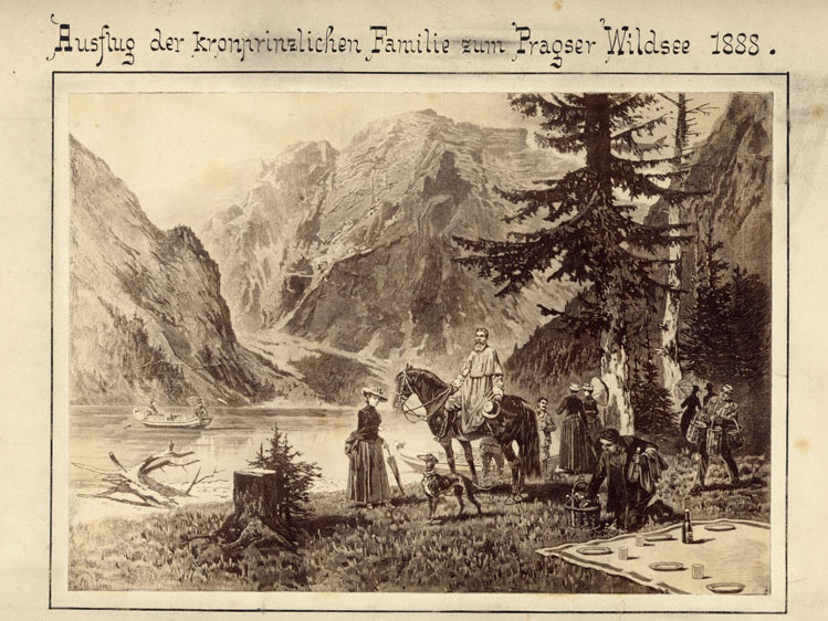 Schließlich erschien sogar der Thronfolger Österreich-Ungarns, Erzherzog Franz Ferdinand, mit Familie und Gefolge am Pragser Wildsee. Am 28. Juni 1914 fiel er mit seiner Frau Sophie Chotek, Herzogin von Hohenberg, in Sarajevo einem Attentat zum Opfer, das den Ersten Weltkrieg auslöste. Das Zeitgeschichtsarchiv Pragser Wildsee trägt auch diesen hohen Gästen des Hotels Rechnung.